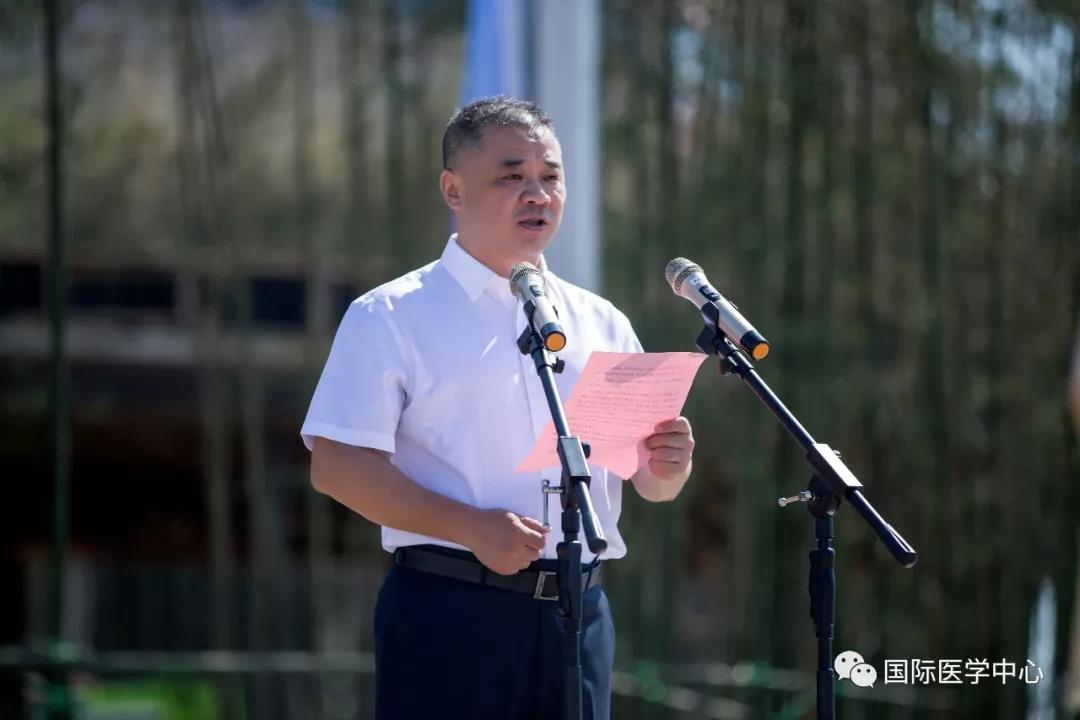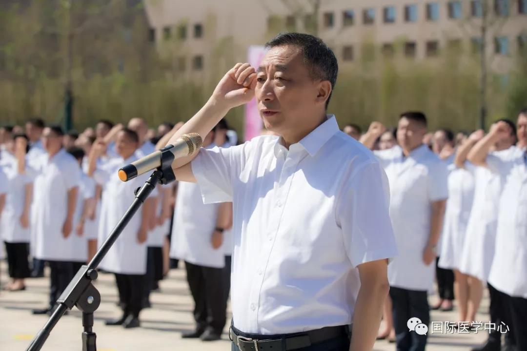 儀式開始,王志峰總經(jīng)理發(fā)表了熱情洋溢的致辭,歡迎來自五湖四海的各位醫(yī)療及醫(yī)療保障工作者們,并祝賀大家成為西安國際醫(yī)學(xué)中心的開拓者、創(chuàng)業(yè)者。他表示,經(jīng)過近一年的密集籌備、人員引進,我中心首批員工到崗,其中學(xué)科帶頭人和骨干來自全國知名三甲醫(yī)院,可謂人才濟濟,精英薈萃,具備揚帆遠(yuǎn)航的實力。全體員工是西安國際醫(yī)學(xué)中心建設(shè)的基石、發(fā)展的核心動力。合格的國際醫(yī)學(xué)人,應(yīng)該是以至善之心博愛天下,以服務(wù)社會積微致遠(yuǎn)。秉承讓“患者有尊嚴(yán)的生活,醫(yī)者有尊嚴(yán)的工作”的價值觀,珍惜機遇,牢記誓言,不忘初心,砥礪前行。匯聚人類生命科學(xué)智慧,同步國際頂尖診療水平。為了一個共同的目標(biāo)凝聚一起,共同“佑護無法衡量的價值”!