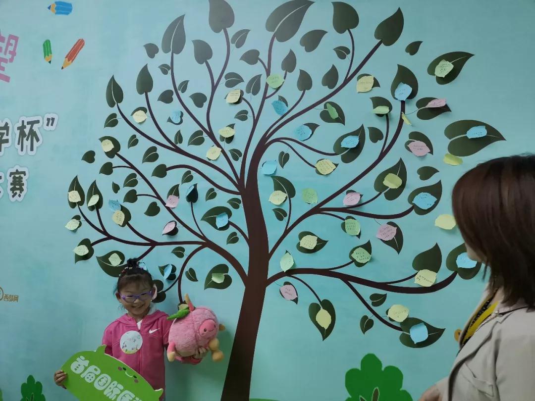 當(dāng)天,小朋友們?cè)跇淙~狀的卡片上寫下自己的心得,將它們貼在了畫著生命之樹的背景墻上,還領(lǐng)到一只象征“平平安安”的蘋果玩偶。