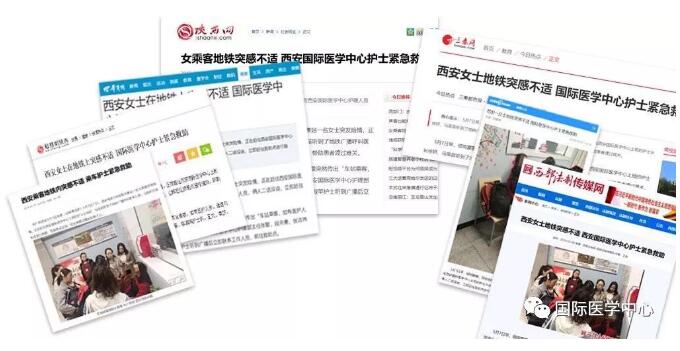 一位名叫“華天”的網(wǎng)友說:“白衣天使們的行動感染了我。在此,為她們獻上一首自創(chuàng)小詩:你的微笑里盛滿人間的情意,你的呵護里蓄滿生命的溫柔,你的專注里寫滿敬業(yè)的精神,你的青春在白衣下煥發(fā)光彩。國際醫(yī)學中心的白衣天使們,你們最美。”一位目睹事件全過程的地鐵乘客在網(wǎng)上留言稱:“作為西安人,我特別自豪。早就知道家門口有一家國際化醫(yī)院,今天早高峰,一出車站門就看到姑娘們跑去救助點。現(xiàn)在得知她們是國際醫(yī)學中心的護士,一百個贊!國醫(yī)中心很棒!”