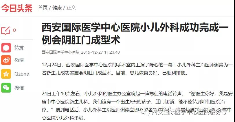 12月24日,西安國(guó)際醫(yī)學(xué)中心醫(yī)院的手術(shù)室內(nèi)上演了暖心的一幕:小兒外科主治醫(yī)師謝崇為一名新生兒成功實(shí)施會(huì)陰肛門成型術(shù)。目前,患兒恢復(fù)良好,已順利排便。