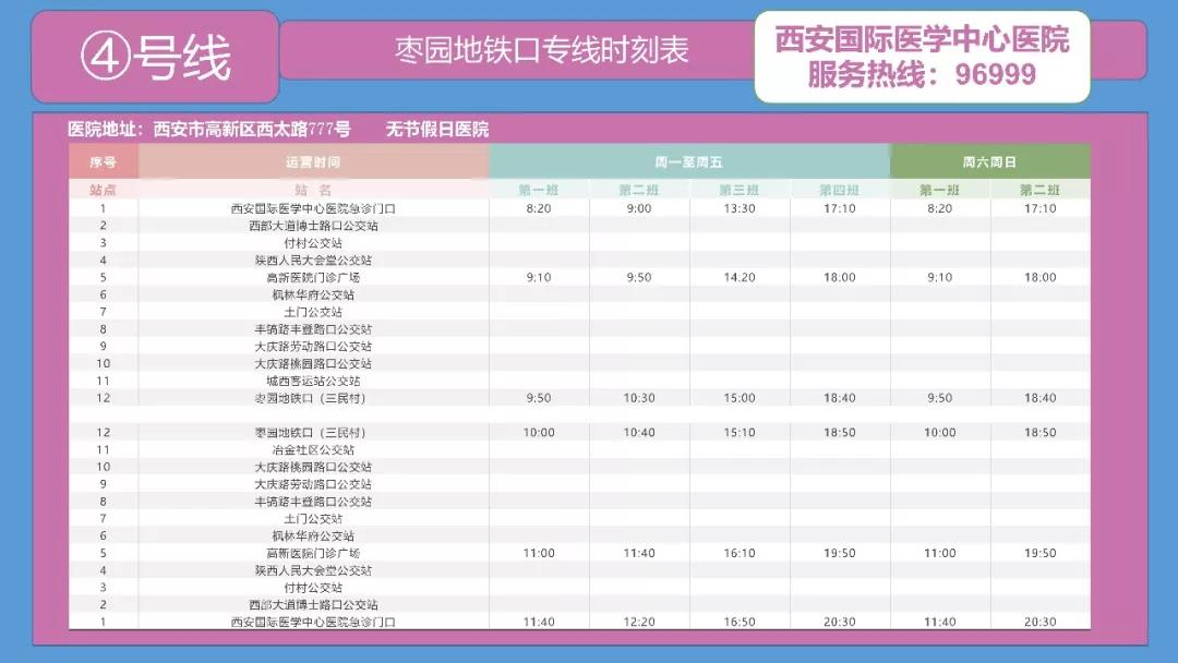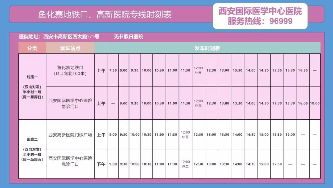 備注:西安國際醫(yī)學(xué)中心醫(yī)院——高新醫(yī)院運行時間為:周一至周五。
