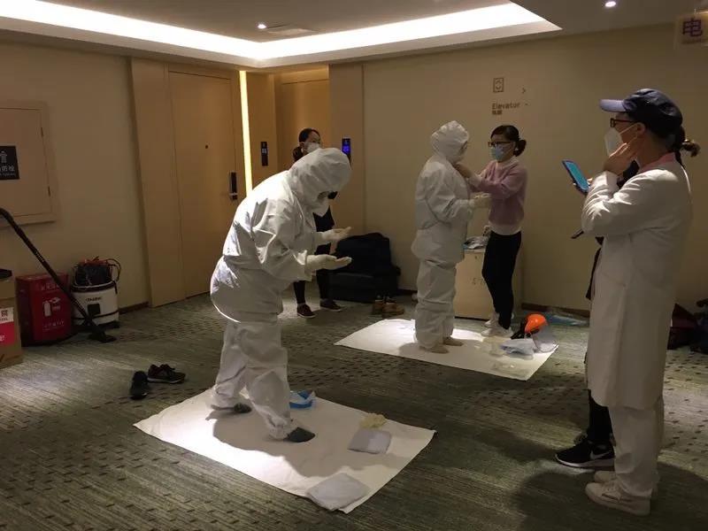 從伴隨清晨第一縷陽光睜眼開始,測體溫、多飲水、適當運動鍛煉呼吸、84消毒液噴灑涂抹房間角角落落等等,一樣不落。我自知已經(jīng)踏上這光榮的戰(zhàn)場和兄弟姐妹們并肩作戰(zhàn)。同時,為了做好戰(zhàn)斗準備,作為戰(zhàn)士的我們今日進行了穿脫“盔甲”的嚴格培訓。