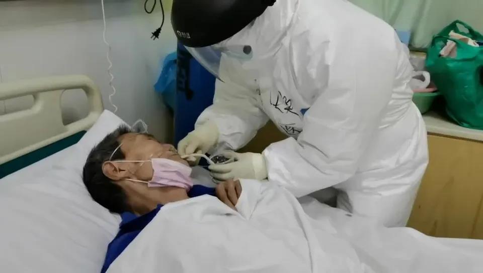 老人姓胡,是一位84歲的新冠肺炎患者。228日,進(jìn)入病房。西安國(guó)際醫(yī)學(xué)中心醫(yī)院赴湖北醫(yī)療隊(duì)賀煥護(hù)士走到老人床邊,提醒老人一定要吃點(diǎn)飯。