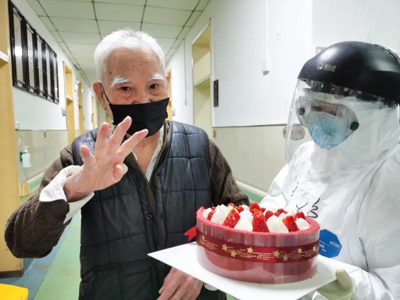 “我年齡大了,活動(dòng)不方便,如今住進(jìn)了醫(yī)院,西安國(guó)際醫(yī)學(xué)中心醫(yī)院赴湖北醫(yī)療隊(duì)隊(duì)員像家人一般照顧我,我心里暖暖的!”正在切蛋糕的87歲汪大爺說(shuō)。