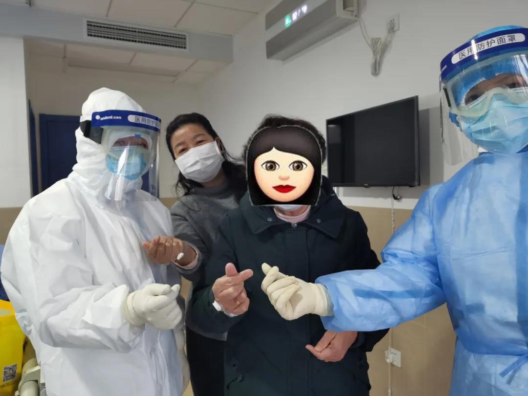 65歲患者劉某與醫(yī)護人員一起比心