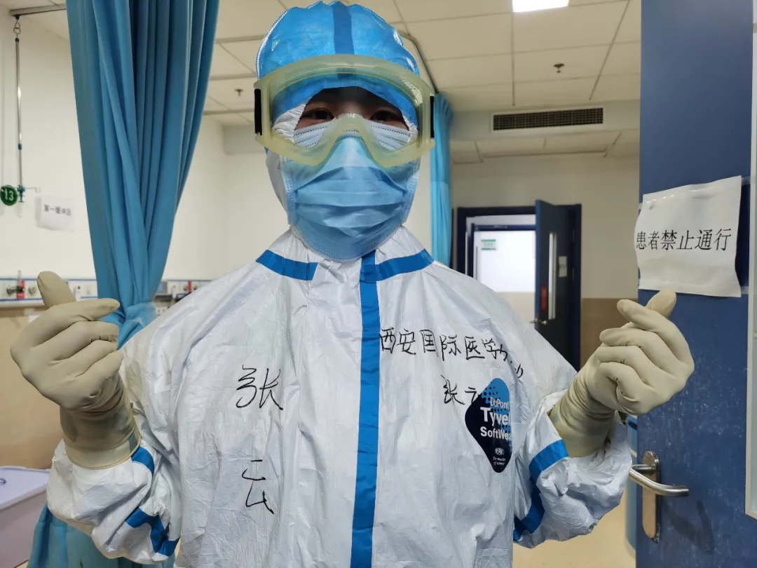 我們都是90后,在家都是父母最寶貝的子女,可是在穿上防護(hù)服的那一刻,我們心甘情愿、無怨無悔的投入到這場無硝煙的戰(zhàn)爭中,我們深知戰(zhàn)勝疾病、守衛(wèi)健康是我們的職責(zé)?;颊咧斡鲈壕褪俏覀兊馁碓?。