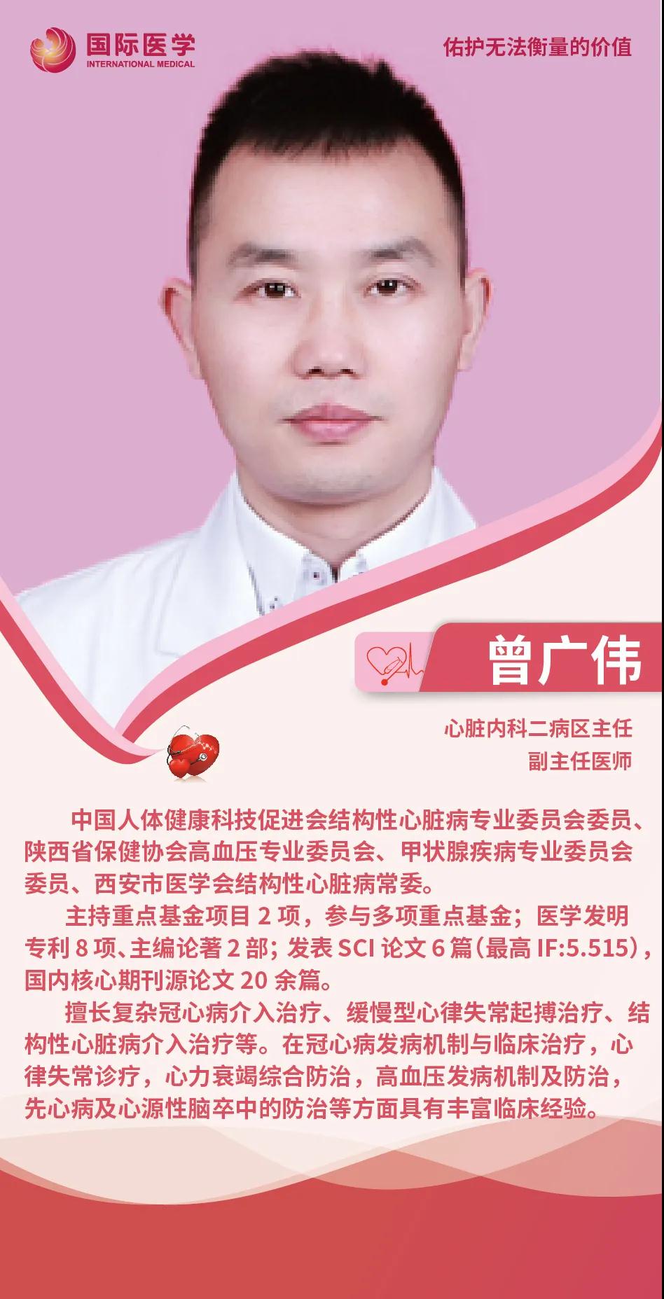 西安國際醫(yī)學中心心臟病醫(yī)院心臟內(nèi)科二病區(qū),現(xiàn)有醫(yī)護團隊33人,由原空軍軍醫(yī)大學唐都醫(yī)院心內(nèi)科曾廣偉教授任學科帶頭人,由原西京醫(yī)院張小娜任護士長,醫(yī)師團隊共14人,其中高級職稱2人,中級職稱6人,博士2人,碩士及以上學歷占70%,團隊人才梯隊合理,專業(yè)技術(shù)水平過硬。