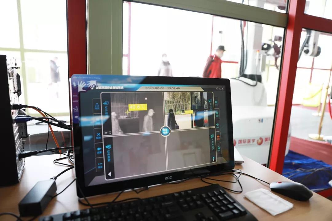 西安國際醫(yī)學中心醫(yī)院在三個主要通道均設立體溫檢測點,逢人必檢、逢疑必核。當被測目標在紅外鏡頭探測器鏡頭8米內快速經過時,儀器在1秒鐘內便可顯示人體熱圖像和最高體溫標度。若被檢測者體溫異常,該系統(tǒng)便立即報警并拍攝體溫異常者圖像。