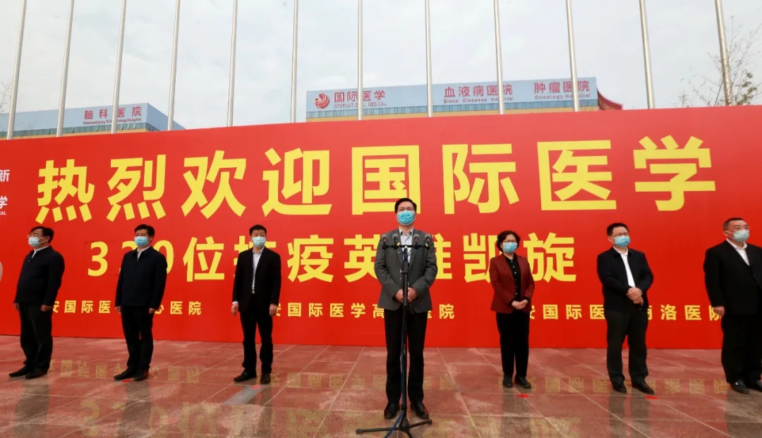 “一個都不能少,一個都不會少。迎接歸來和送大家出征時的心情不同,西安國際醫(yī)學中心醫(yī)院大家庭終于團圓了!你們是醫(yī)院的驕傲,希望你們保重身體。”西安國際醫(yī)學中心醫(yī)院院長尹強激動萬分,寄語載譽而歸的各位隊員。