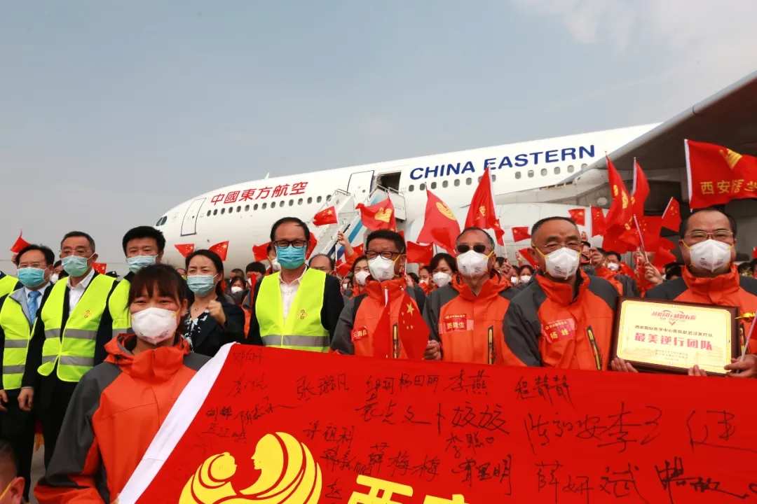 不負韶華戰(zhàn)疫情,春滿華夏迎君歸。西安國際醫(yī)學中心醫(yī)院支援湖北醫(yī)療隊225名醫(yī)護人員圓滿完成救援任務(wù),由“凱旋門”登機,搭乘“勝利號”,于3月24日抵達西安。西安國際醫(yī)學中心醫(yī)院還有張欣、李晶、申歡歡、張波、馬喬璐、商江麗等6名隊員仍奮戰(zhàn)在武漢協(xié)和醫(yī)院西院。