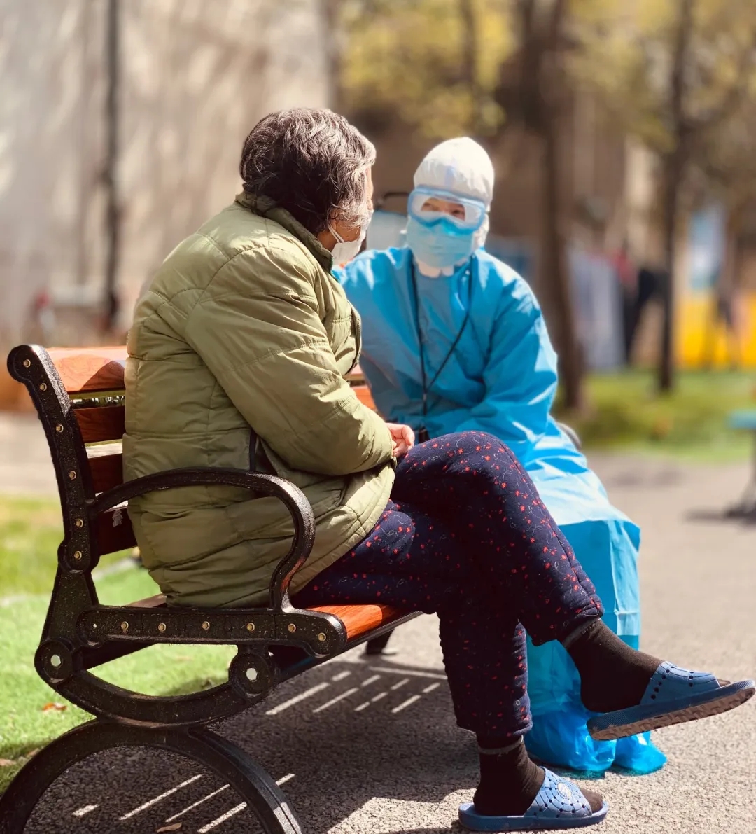 8艙有一位80多歲的老奶奶,中午出來遛彎時(shí)看到了醫(yī)療隊(duì)護(hù)士萬珍妮,主動(dòng)過來攀談?!澳闶顷兾鱽淼??我看你衣服上寫著西安幾個(gè)字了。”“是啊,奶奶,我們是西安國際醫(yī)學(xué)中心醫(yī)院來武漢支援的?!比f珍妮通過和奶奶聊天得知,奶奶的父親以前在寶雞工作過很長(zhǎng)時(shí)間?!拔乙菜惆雮€(gè)陜西人了。沒想到在這里還能見到“老鄉(xiāng)”!感謝你們!”奶奶感覺很親切,和萬珍妮話起了“家?!?。