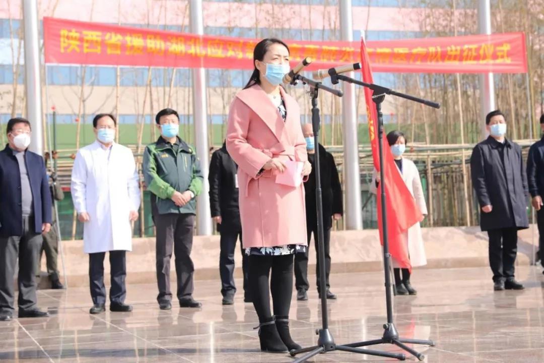 劉勤社同志代表省委省政府為大家壯行,他表示,“武漢疫情依然嚴(yán)峻,每位醫(yī)護(hù)人員勇于擔(dān)當(dāng)?shù)木窳钗腋袆?dòng)。截止目前,陜西已派出近1400名醫(yī)護(hù)人員奔赴‘前線’,省委省政府為陜西醫(yī)療隊(duì)昂揚(yáng)的斗志,負(fù)責(zé)的精神給予高度贊揚(yáng)。希望大家在一線充分展示陜西醫(yī)療隊(duì)和國際醫(yī)學(xué)應(yīng)有的高質(zhì)量醫(yī)療技術(shù)水平,同時(shí)也做好自我防護(hù),盼大家凱旋回家!”