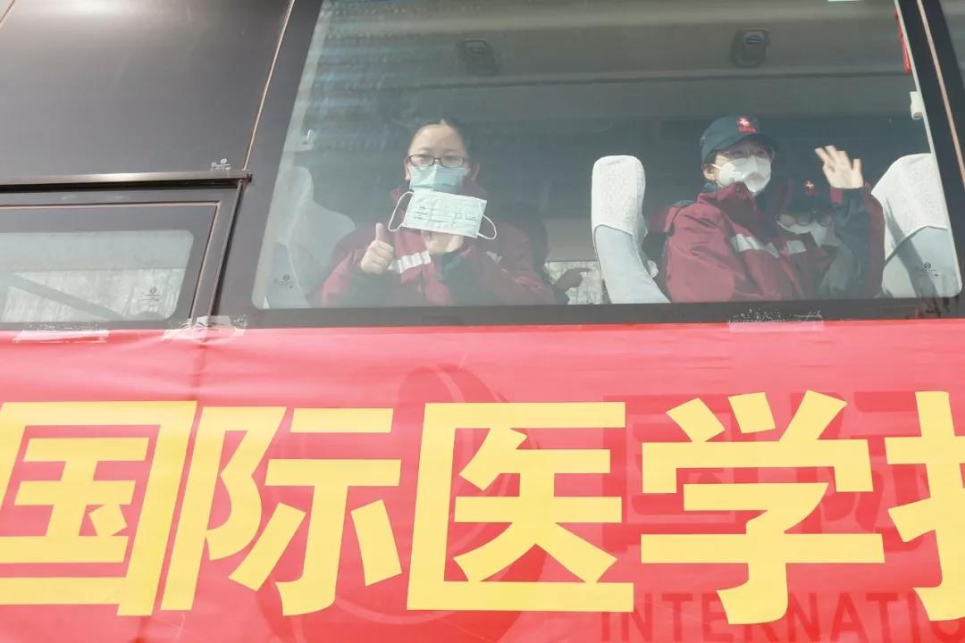 “每一次集結(jié)號(hào)吹響,你們都奮勇向前,在疫情面前無私奉獻(xiàn)、敢于擔(dān)當(dāng),正是因?yàn)槲覀冇写髳?。國際醫(yī)學(xué)人時(shí)時(shí)刻刻都不忘初心、牢記使命,用行動(dòng)踐行我們的誓言:施天使之愛,佑百姓健康!”董事長史今在儀式上向出征隊(duì)員致敬并叮囑隊(duì)員們一定要保護(hù)好自己,“零感染、高質(zhì)量、共克時(shí)艱,出色完成患者的救治任務(wù)。你們帶去的是陜西人民對(duì)武漢人民的深情厚誼,要讓黨旗在一線高高飄揚(yáng)!和武漢人民一起共度難關(guān)!”