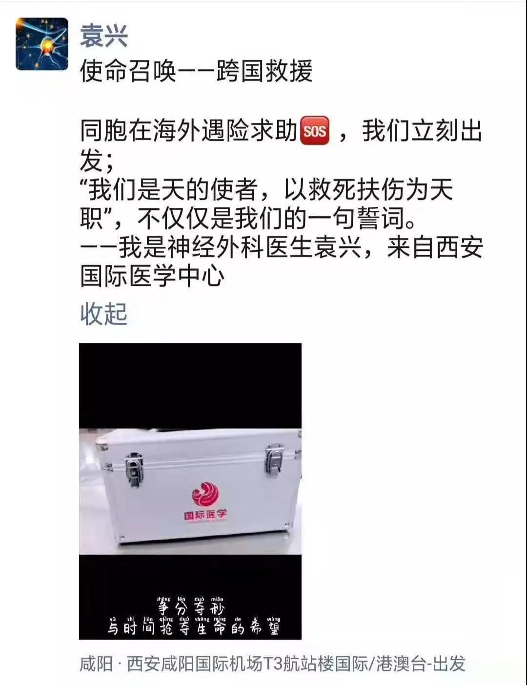 “這是中國醫(yī)生義不容辭的責(zé)任!”西安國際醫(yī)學(xué)中心醫(yī)院腦科醫(yī)院神經(jīng)外科主任賀世明介紹,12月2日,剛下手術(shù)的賀世明主任接到了求助電話,立即匯報(bào)上級(jí)領(lǐng)導(dǎo),尹強(qiáng)院長(zhǎng)當(dāng)機(jī)立斷,派出袁興醫(yī)生星夜兼程,帶著急救藥品設(shè)備奔赴泰國。