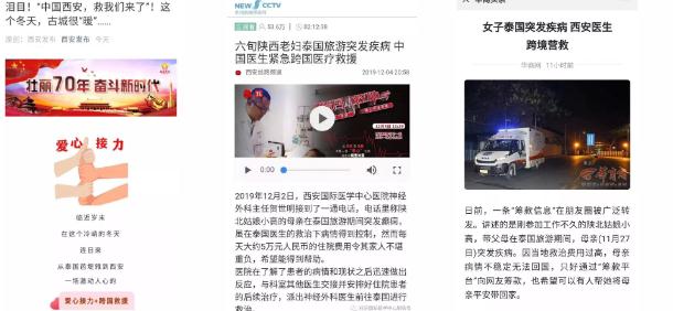 12月4日,西安國際醫(yī)學(xué)中心醫(yī)院醫(yī)護(hù)人員在西安咸陽國際機(jī)場(chǎng)的特殊通道嚴(yán)陣以待,中國駐泰國大使館多方協(xié)調(diào),春秋航空總部提供幫助,西安市人民政府外事辦公室啟動(dòng)安全領(lǐng)事保護(hù)機(jī)制,西安咸陽機(jī)場(chǎng)海關(guān)通力協(xié)調(diào)、盡可能壓縮通關(guān)時(shí)長(zhǎng),西安咸陽國際機(jī)場(chǎng)運(yùn)行控制協(xié)調(diào)中心鼎力支持,從泰國到西安,直到西安國際醫(yī)學(xué)中心醫(yī)院的救護(hù)車停在停機(jī)坪上……陜西省多家媒體多方報(bào)道、中央電視臺(tái)二套播報(bào)點(diǎn)贊,跨國救援的故事溫暖了西安城。