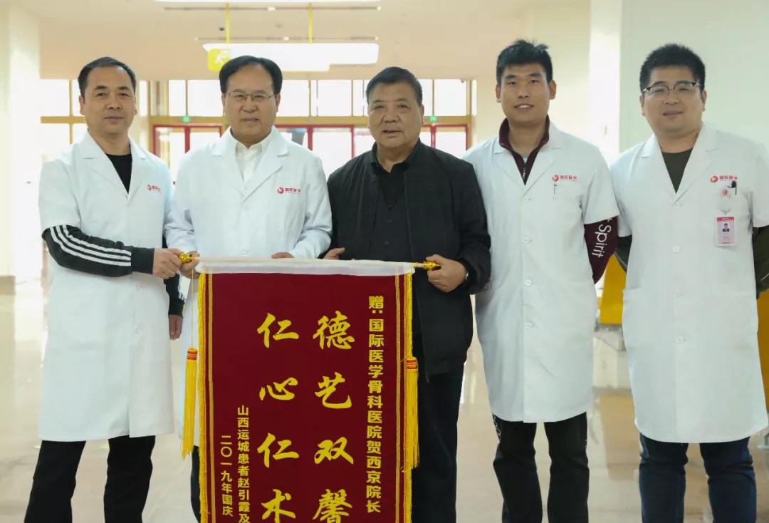10月9號下午兩點半,患者家屬專程來到骨科醫(yī)院向賀西京院長贈送錦旗以示感謝。所有參與手術(shù)的醫(yī)護工作者都非常欣慰,并表示會再接再厲,珍惜每一次服務,一次做好。