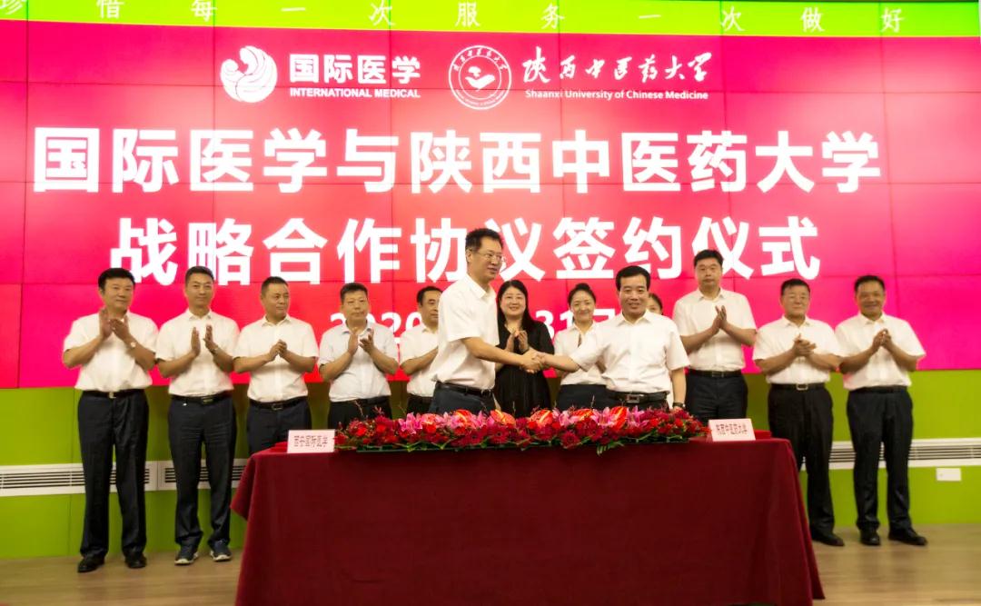 7月31日上午,西安國際醫(yī)學(xué)投資股份有限公司與陜西中醫(yī)藥大學(xué)戰(zhàn)略合作協(xié)議簽署暨附屬醫(yī)院揭牌儀式在西安國際醫(yī)學(xué)中心醫(yī)院保障樓6樓會議室舉行。陜西省中醫(yī)藥管理局副局長孔群、陜西中醫(yī)藥大學(xué)校長孫振霖、陜西中醫(yī)藥大學(xué)黨委副書記于遠(yuǎn)望、陜西中醫(yī)藥大學(xué)黨委副書記蒲濟生,國際醫(yī)學(xué)實際控制人劉建申、董事長史今、黨委書記、總裁劉瑞軒及西安國際醫(yī)學(xué)中心醫(yī)院院長尹強、總經(jīng)理王志峰等領(lǐng)導(dǎo)出席儀式,陜西中醫(yī)藥大學(xué)及國際醫(yī)學(xué)各醫(yī)院相關(guān)人員參加活動。