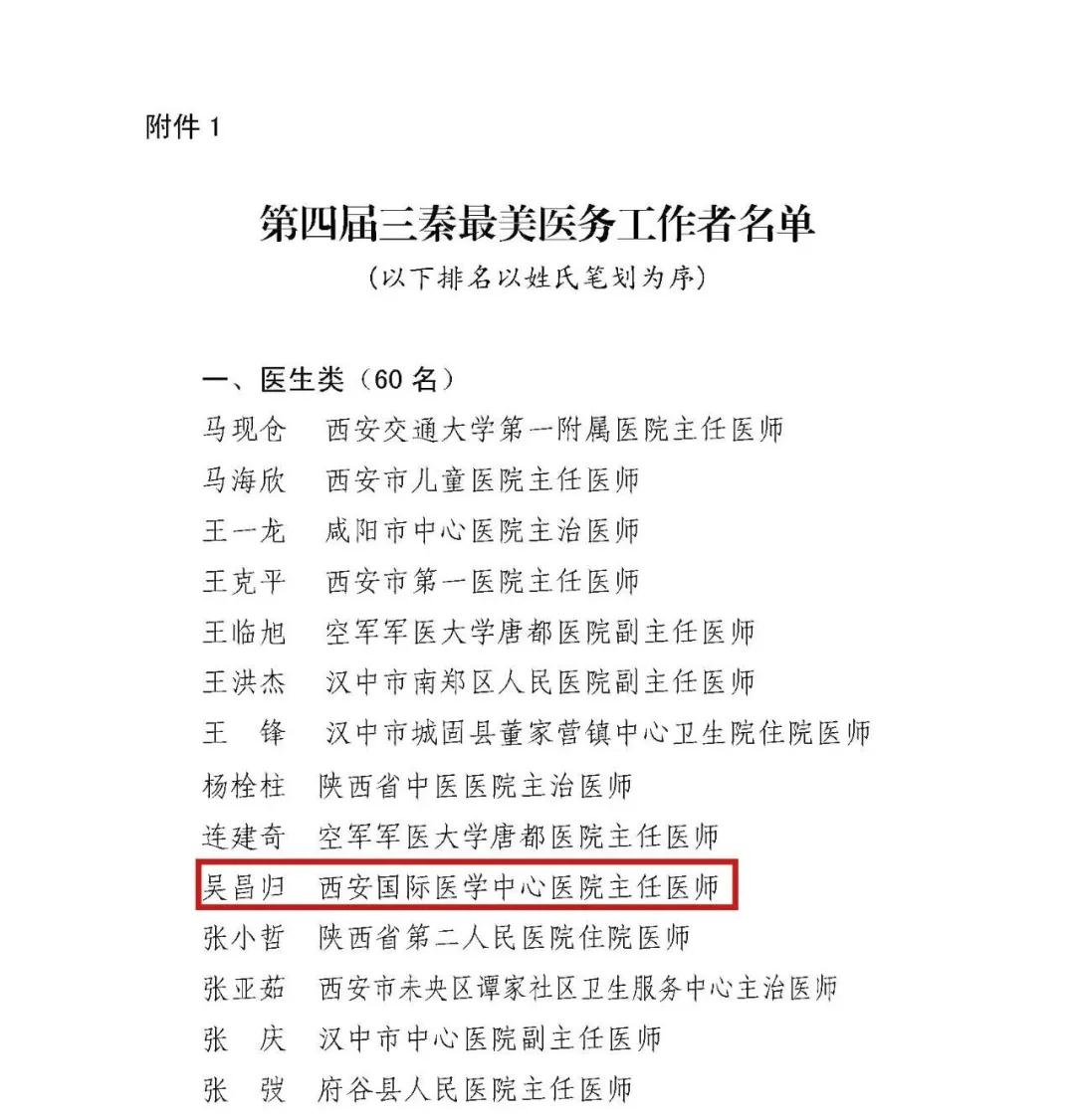 日前,陜西省衛(wèi)健委授予西安國際醫(yī)學中心醫(yī)院胸科醫(yī)院吳昌歸院長“第四屆三秦最美醫(yī)務(wù)工作者”榮譽稱號。