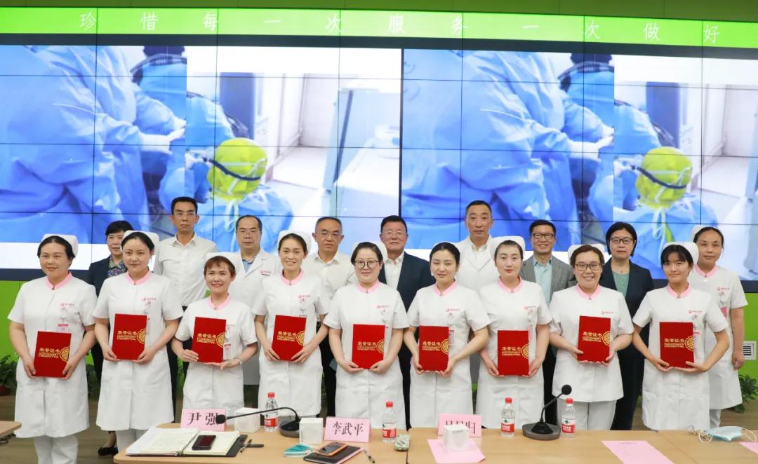 醫(yī)院領(lǐng)導為9名護理人員頒發(fā)了榮譽證書,并勉勵大家在今后的工作中,以嚴謹?shù)墓ぷ鲬B(tài)度、精湛的護理技術(shù)以及飽滿的精神和昂揚的斗志,為廣大患者的生命健康保駕護航。