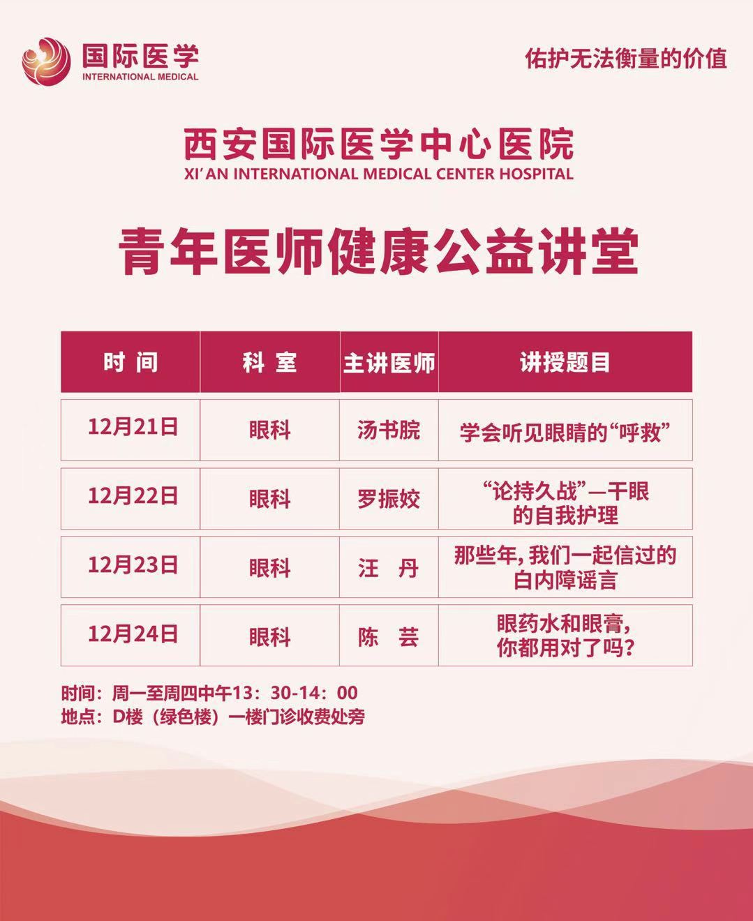 西安國際醫(yī)學(xué)中心醫(yī)院—青年醫(yī)師健康公益講堂預(yù)告