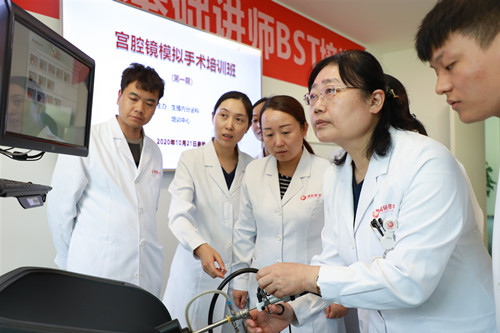 生殖內(nèi)分泌科黃艷紅主任對學員進行宮腔鏡基礎(chǔ)理論授課,帶領(lǐng)學員們聚焦宮腔鏡微創(chuàng)手術(shù)的新理論、新進展、新技術(shù),針對宮腔鏡手術(shù)在生殖不孕領(lǐng)域的應用進行全方位、多層次學習交流。隨后黃艷紅主任、馬雁南教員、朱騫教員對學員演示宮腔鏡的具體操作,包括宮腔鏡的基礎(chǔ)操作、宮腔鏡檢查術(shù)、宮腔鏡下子宮內(nèi)膜息肉切除術(shù)、宮腔粘連松解術(shù)、宮腔鏡下黏膜下肌瘤切除術(shù)、子宮發(fā)育畸形等。宮腔鏡手術(shù)模擬訓練系統(tǒng)給學員進行反復的模擬訓練,并對學員進行反復模擬訓練,從而規(guī)范化操作流程、強化操作技能。