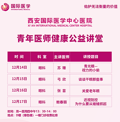 西安國際醫(yī)學中心醫(yī)院—青年醫(yī)師健康公益講堂預告