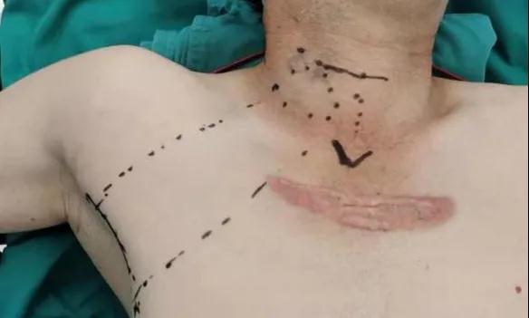 甲乳外科醫(yī)生在與邢先生的交談中得知,他為瘢痕體質(zhì),胸部有一較大的明顯瘢痕。瘢痕體質(zhì)是一種特殊體質(zhì),表現(xiàn)為身體任何部位受損愈合后,可出現(xiàn)明顯大于原創(chuàng)口或持續(xù)增大的瘢痕。邢先生因瘢痕苦惱多時(shí),嘗試多種治療手段均無明顯效果,為其生活帶來諸多不便。