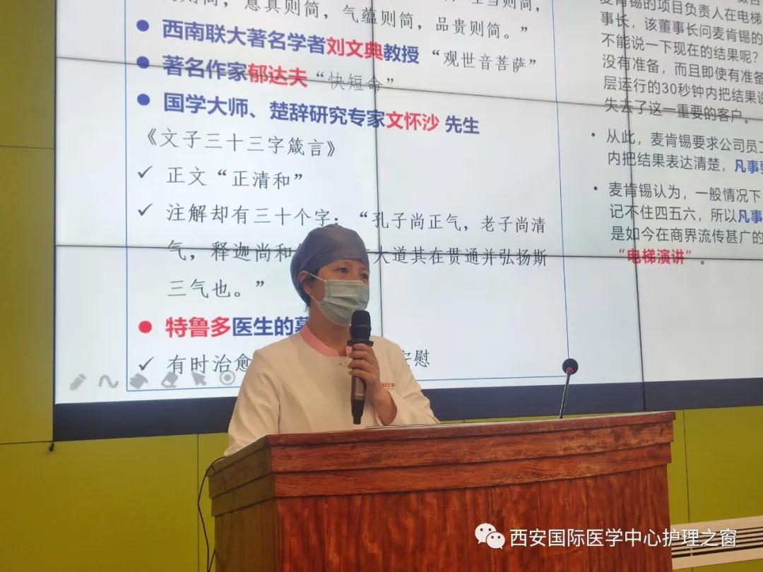 王汝娜總護士長分享了“怎樣做一名優(yōu)秀的護士長”,從護士長應該具備的9個方面的素質(zhì)及護士長怎么實施管理等方面提出了許多真知灼見,讓護士長們備受啟發(fā),受益匪淺。