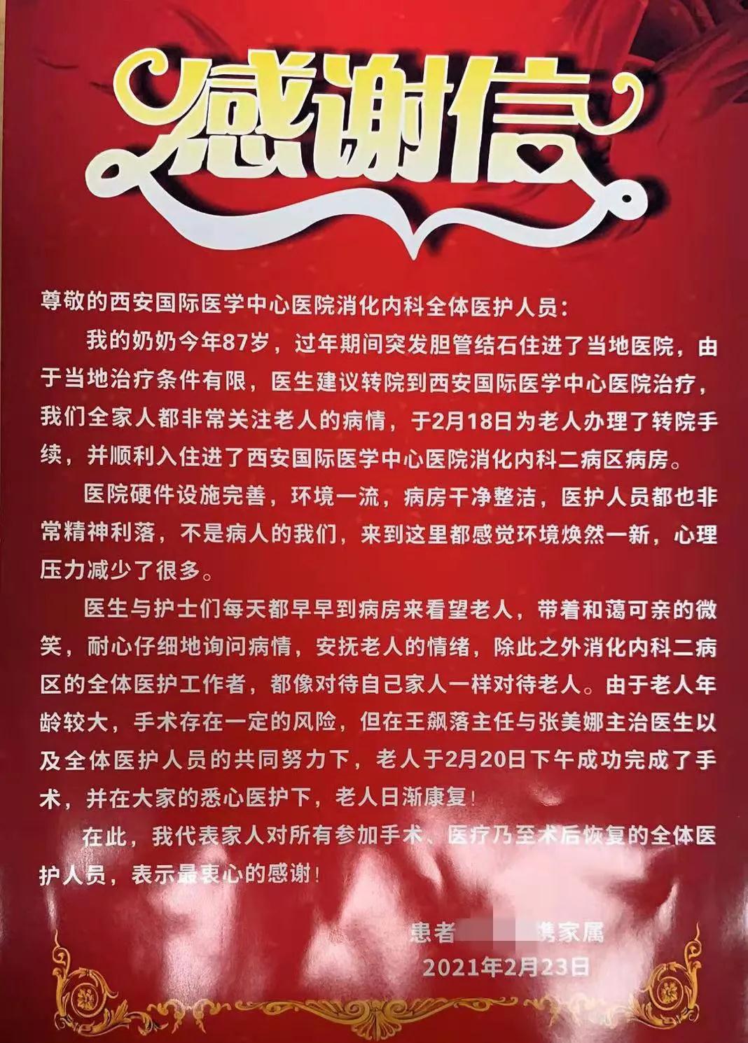 過年期間,87歲的岳奶奶連續(xù)發(fā)燒、肚子疼。家人送往外院檢查后,診斷為膽總管結石,但醫(yī)療條件有限,無法為岳奶奶治療。2月18日,岳奶奶的兒女趕緊將母親送到西安國際醫(yī)學中心醫(yī)院就診。經核磁檢查,考慮膽總管結石,收入消化內科二病區(qū)進一步治療。