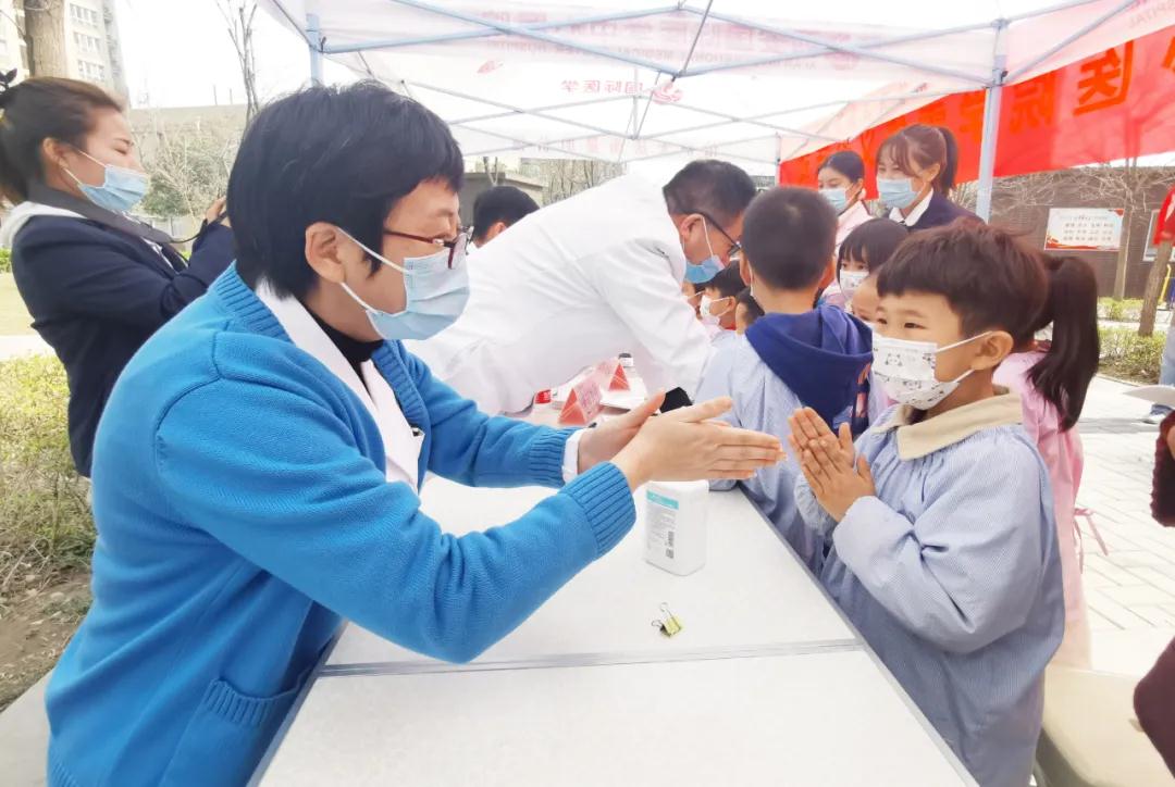 在創(chuàng)匯社區(qū)義診現(xiàn)場,高新第八幼兒園的小朋友們在醫(yī)護人員的帶領(lǐng)下學做“洗手操”。醫(yī)生用通俗易懂的語言,詳細講解了洗手的重要性及如何正確洗手遠離細菌等相關(guān)知識,分步驟教會了小朋友們?nèi)绾握_洗手。同時,醫(yī)護人員還為小朋友們介紹了體檢車的功能及用途,并帶領(lǐng)大家進入體檢車參觀。