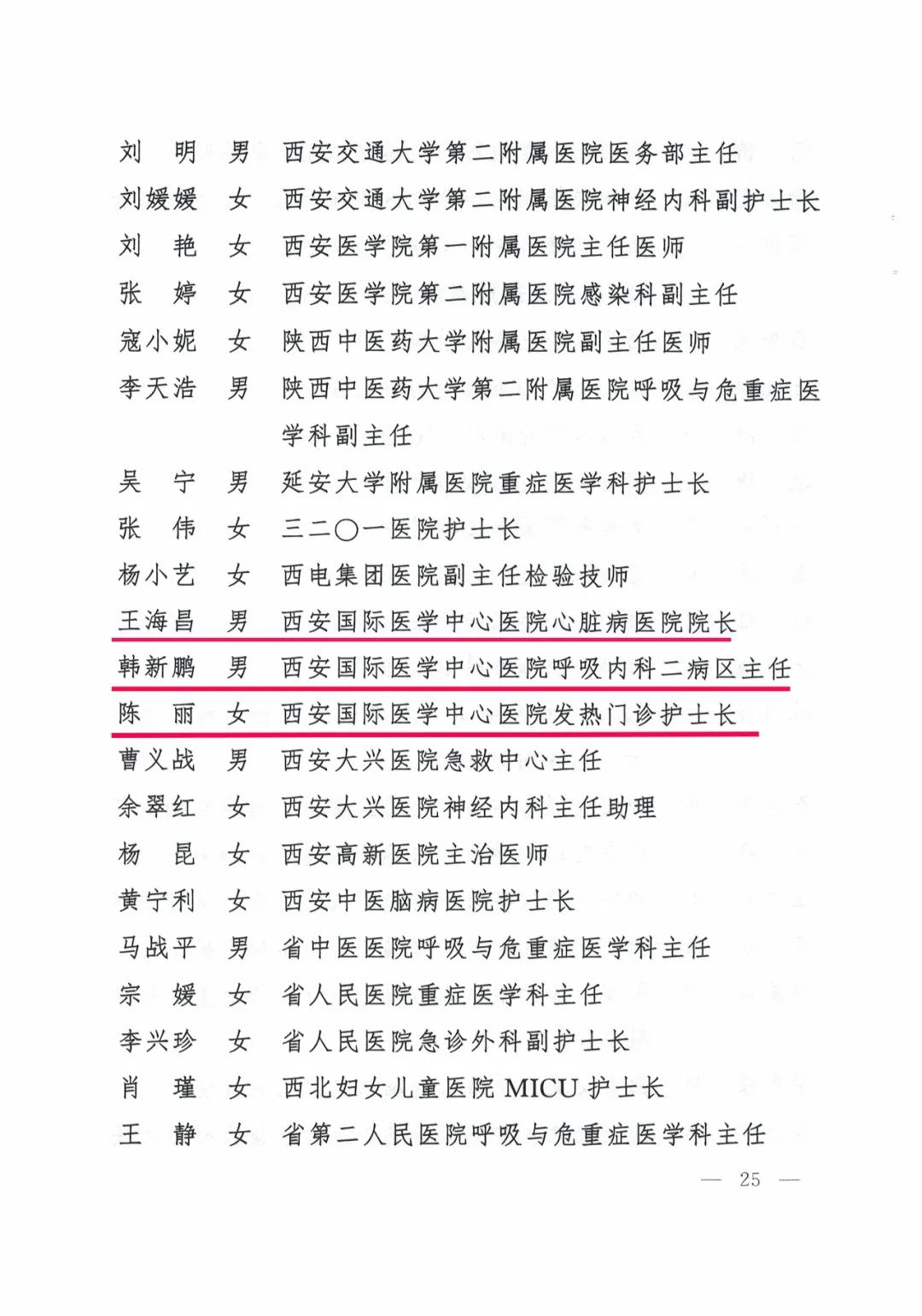 近日,中共陜西省委、陜西省人民政府印發(fā)《關(guān)于表彰全省抗擊新冠肺炎疫情先進(jìn)個人和先進(jìn)集體的決定》。西安國際醫(yī)學(xué)中心醫(yī)院援鄂醫(yī)療隊榮獲陜西省抗擊新冠肺炎疫情先進(jìn)集體;心臟病醫(yī)院院長王海昌、胸科醫(yī)院呼吸內(nèi)科二病區(qū)主任韓新鵬、發(fā)熱門診護(hù)士長陳麗榮獲陜西省抗擊新冠肺炎疫情先進(jìn)個人。