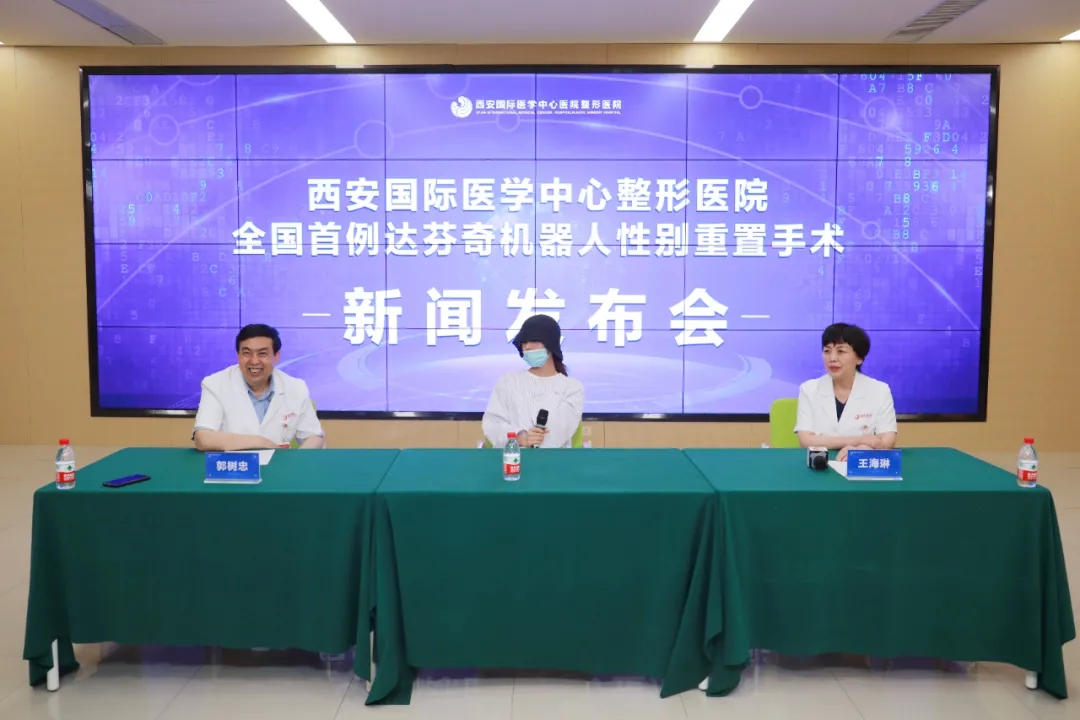 2021年5月28日,西安國際醫(yī)學中心醫(yī)院整形醫(yī)院順利完成了全國首例達芬奇機器人性別重置手術。手術由西安國際醫(yī)學中心醫(yī)院整形醫(yī)院院長郭樹忠教授、婦科腫瘤醫(yī)院王海琳院長,以及泌尿外科楊增悅主任共同主刀完成,手術耗時近10個小時,先后進行了男性生殖器官切除和女性生殖器官再造手術,術中用達芬奇機器人切取腹膜移植進行女性生殖器官再造。用達芬奇機器人做性別重置手術既往只有美國醫(yī)生有一篇文獻報道(2020年),國內(nèi)尚未見報。