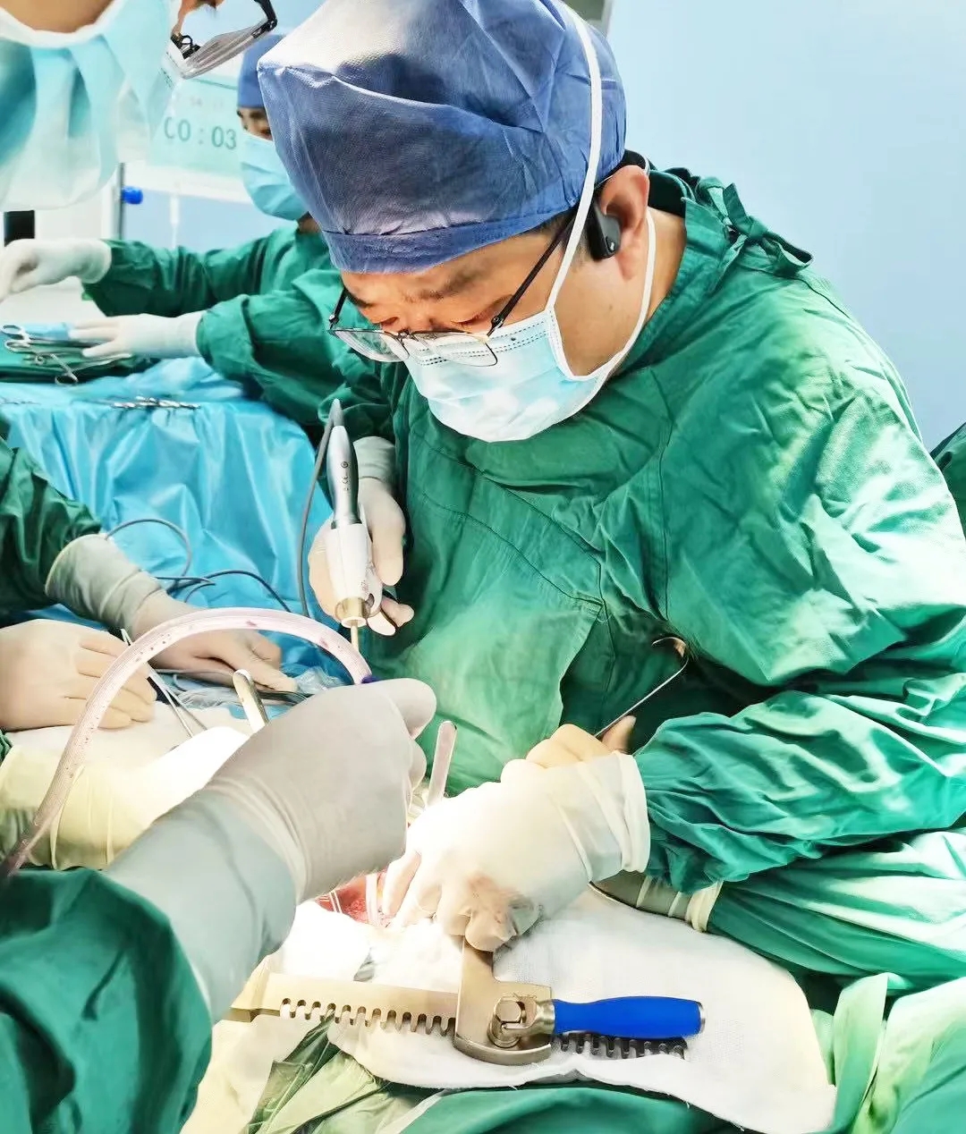 麻醉手術(shù)中心副主任丁倩為減輕患者術(shù)后不適,實施單腔聯(lián)合支氣管封堵插管,同時進(jìn)行了肋間神經(jīng)阻滯麻醉。術(shù)中發(fā)現(xiàn)患者膈疝巨大,食管和疝囊分界不清,部分胃組織和結(jié)腸疝已進(jìn)入胸腔。李文海憑借豐富的臨床經(jīng)驗,仔細(xì)辨別解剖變異,有序完成分離、縫合、修補(bǔ)等一系列操作,胸外科穆強(qiáng)副主任醫(yī)師、劉歡住院醫(yī)師、麻醉手術(shù)中心團(tuán)隊通力配合,手術(shù)最終順利完成,患者安全返回胸外科監(jiān)護(hù)室病房。目前患者術(shù)后恢復(fù)良好,于近日準(zhǔn)備出院。