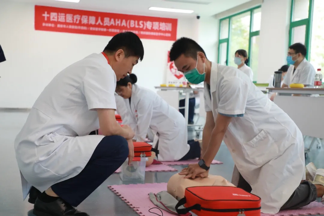 西安國(guó)際醫(yī)學(xué)中心醫(yī)院培訓(xùn)中心作為通過(guò)美國(guó)心臟協(xié)會(huì)(AHA)國(guó)際資質(zhì)認(rèn)證的專(zhuān)業(yè)培訓(xùn)機(jī)構(gòu),引進(jìn)了標(biāo)準(zhǔn)化的高級(jí)生命支持、基礎(chǔ)生命支持、拯救生命系列課程。此次保障十四運(yùn)醫(yī)護(hù)人員第一批AHA基礎(chǔ)生命支持(BLS)培訓(xùn)后,培訓(xùn)中心將為考核合格的學(xué)員頒發(fā)國(guó)際證書(shū)。