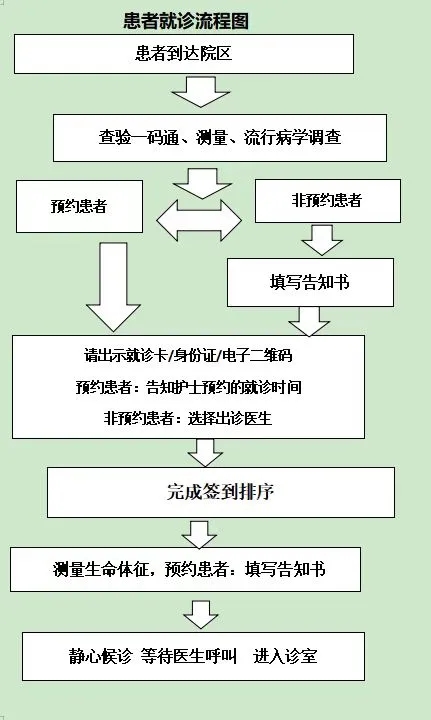 四、進(jìn)院必預(yù)檢:①主動(dòng)打卡我院一碼通、接受流病史詢問、測(cè)溫。無碼人員持本人有效身份證件通過無碼通道預(yù)檢分診,進(jìn)行新冠肺炎相關(guān)流行病學(xué)史登記。②中、高風(fēng)險(xiǎn)地區(qū)來院及出現(xiàn)發(fā)熱、干咳、乏力、嗅覺或味覺減退或喪失、鼻塞、流涕、咽痛、結(jié)膜炎、肌肉痛和腹瀉等癥狀的患者來院,請(qǐng)主動(dòng)告知預(yù)檢分診人員,服從引導(dǎo)就診,對(duì)因瞞報(bào)、謊報(bào)造成疫情擴(kuò)散者依法追究責(zé)任。