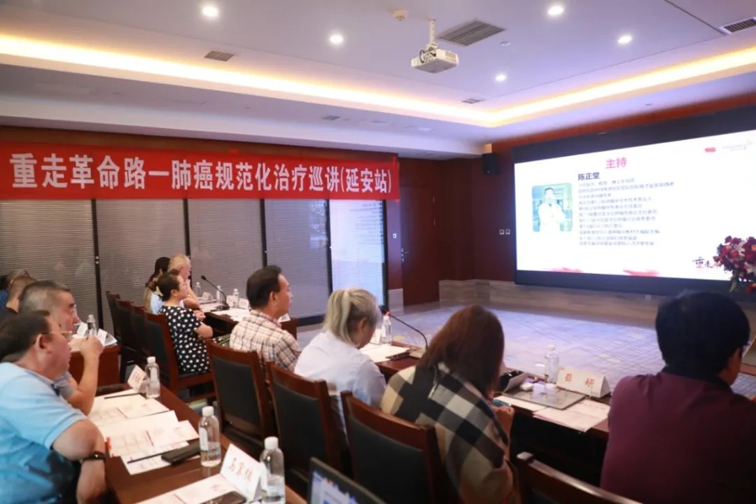 “重走革命路,肺癌規(guī)范化治療巡講-延安站”活動(dòng)于在7月31日下午進(jìn)行。上海交通大學(xué)醫(yī)學(xué)院附屬新華醫(yī)院副院長陳昶教授、西安國際醫(yī)學(xué)中心醫(yī)院腫瘤醫(yī)院院長南克俊教授、延安大學(xué)附屬醫(yī)院腫瘤科主任趙紅教授致辭。在“統(tǒng)籌全局,重新出發(fā)”、“與時(shí)俱進(jìn),走向希望”、“星火燎原,革命之路”三個(gè)環(huán)節(jié)中,延安、上海、遵義三地的專家們通過視頻會(huì)議各抒己見,博采眾長,就肺癌治療領(lǐng)域的諸多問題進(jìn)行了充分地交流。西安國際醫(yī)學(xué)中心醫(yī)院胸科醫(yī)院李文海副院長、腫瘤醫(yī)院薛妍副院長分別作了題為《ASCO NSCLC術(shù)后輔助治療進(jìn)展》、《ASCO NSCLC晚期治療進(jìn)展》的報(bào)告,放射治療中心陸軍主任與腫瘤三病區(qū)劉金鵬主任主持并參與了討論。