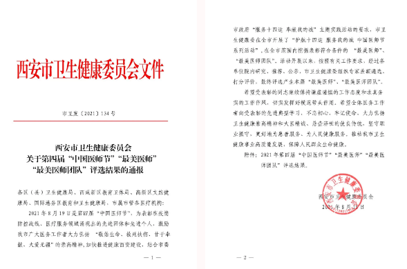 在中國醫(yī)師節(jié)到來之際,西安市衛(wèi)健委、高新區(qū)文旅健康局表彰了一批先進(jìn)醫(yī)療機(jī)構(gòu)、優(yōu)秀醫(yī)務(wù)工作者,西安國際醫(yī)學(xué)中心醫(yī)院3個(gè)科室、6名醫(yī)生獲得表彰。
