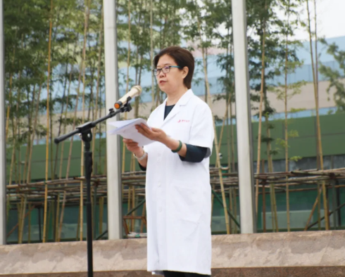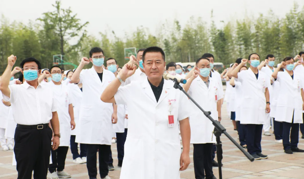 最后,劉延彤院長助理帶領(lǐng)全體新入職員工舉起右手,莊嚴(yán)宣誓,鏗鏘有力的誓言在萬人廣場久久回蕩。