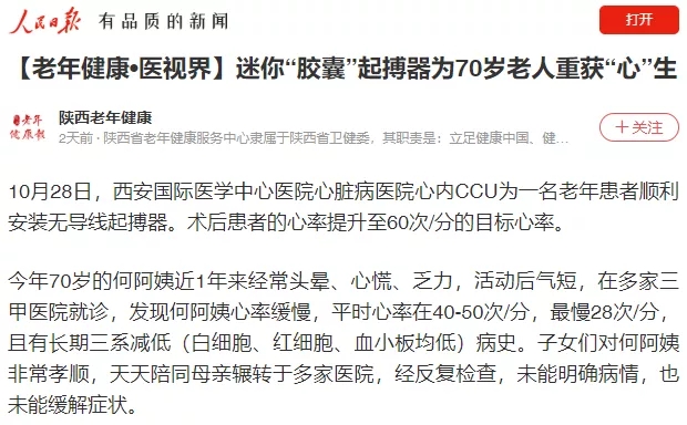 迷你“膠囊”起搏器為70歲老人重獲“心”生
