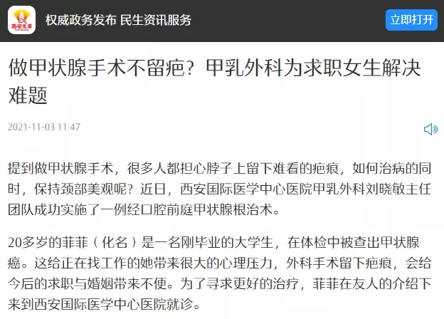 做甲狀腺手術(shù)不留疤?甲乳外科為求職女生解決難題