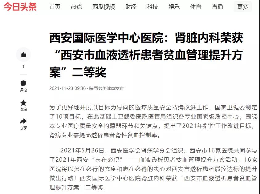 腎臟內(nèi)科榮獲“西安市血液透析患者貧血管理提升方案”二等獎