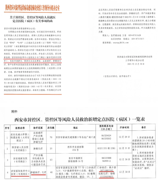 12月31日,陜西省應(yīng)對新冠肺炎疫情工作領(lǐng)導小組辦公室發(fā)布《關(guān)于封控區(qū)、管控區(qū)等風險人員就醫(yī)定點醫(yī)院有關(guān)事項的函》,指定西安國際醫(yī)學中心醫(yī)院作為近期隔離管控區(qū)人員放化療定點醫(yī)院。
