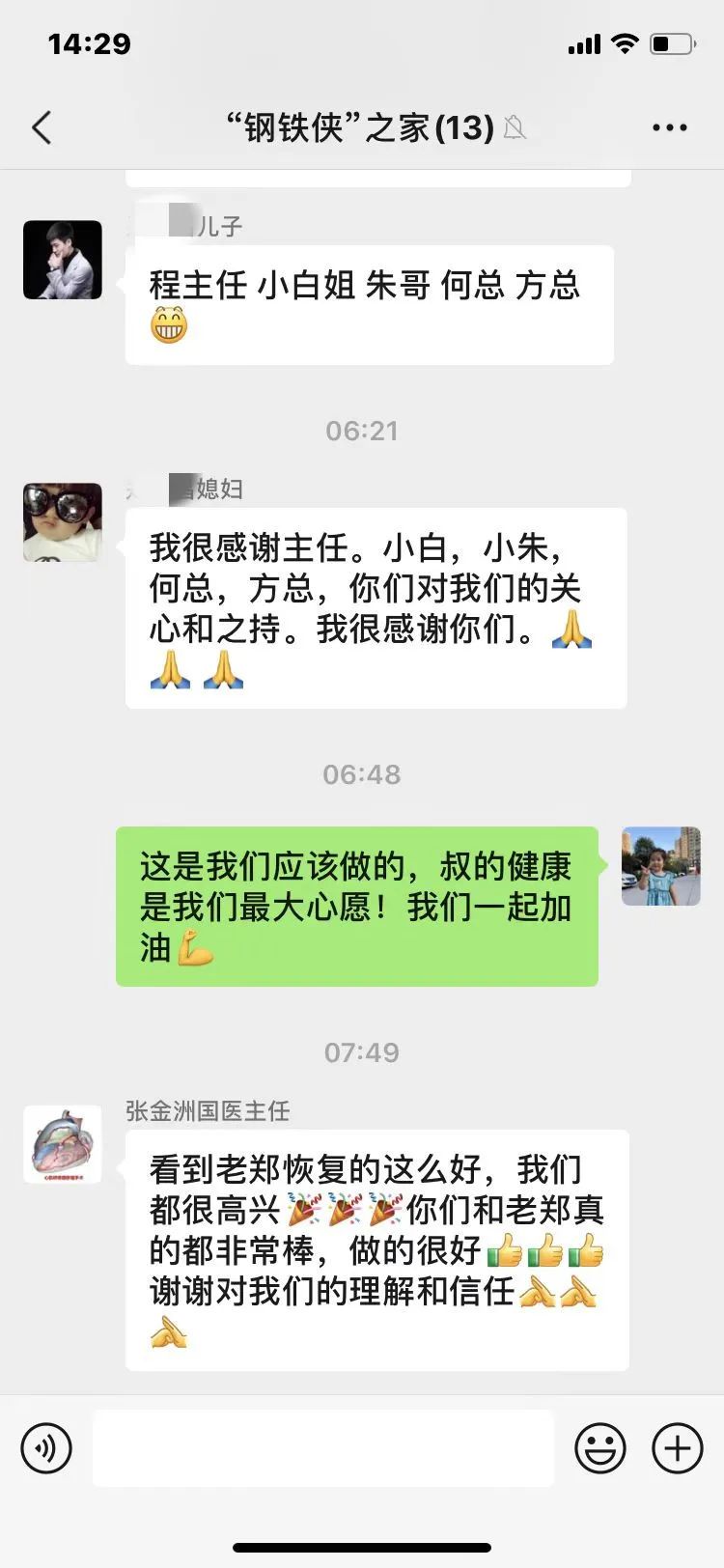 “他們專門為我建了一個(gè)‘鋼鐵俠之家’的微信群,我和張?jiān)洪L還有科室的醫(yī)護(hù)人員都像家人一樣,我每天都會(huì)在群里發(fā)我的日常狀態(tài)、吃的藥量”,面色紅潤的老鄭步履輕盈地走到駕駛座:“別說開車了,在這之前,我連路都走不了,現(xiàn)在我可以去接送孫子上下學(xué)?!?