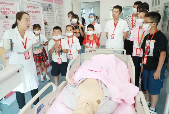 在培訓(xùn)中心,醫(yī)護(hù)人員為小朋友們講解急救知識、心肺檢查及手術(shù)科普知識。“如果同學(xué)摔傷、暈倒、停止呼吸怎么辦呢?”醫(yī)生示范,教會(huì)大家如何正確地現(xiàn)場救助。