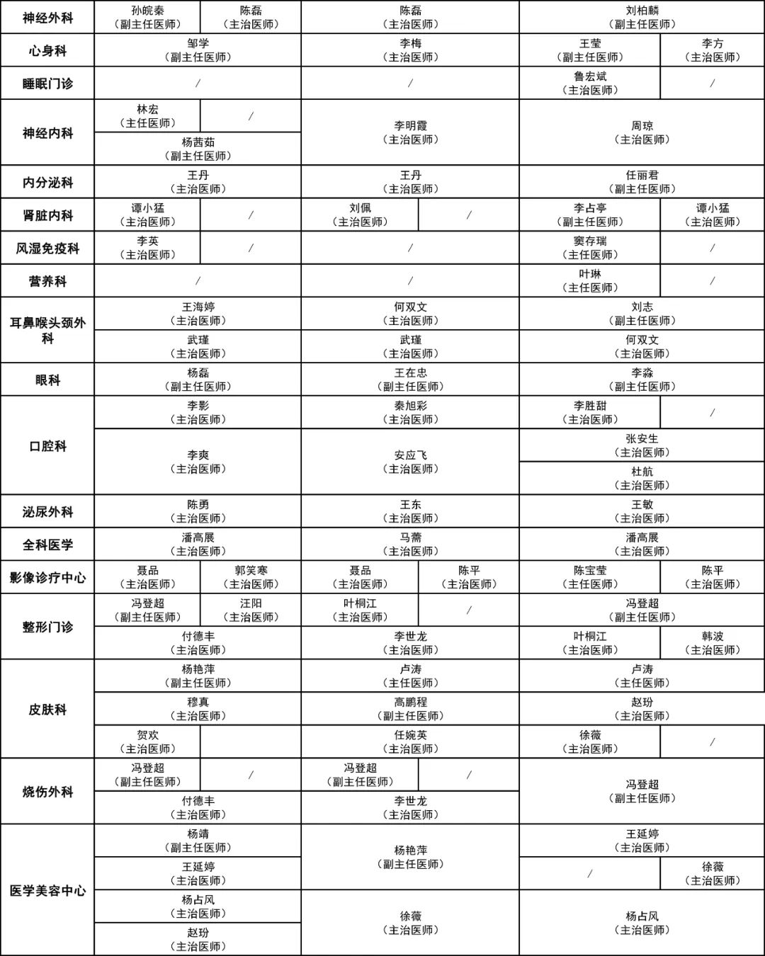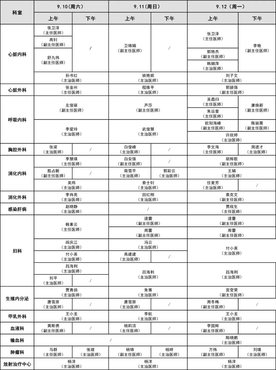 中秋節(jié)門(mén)診醫(yī)師出診信息