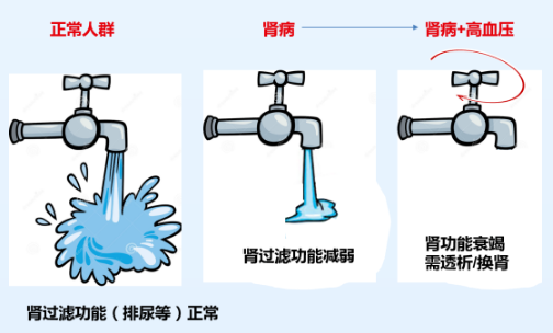 高血壓合并腎病會(huì)讓腎臟濾過率減弱,最終導(dǎo)致腎功能衰竭需要透析治療。
