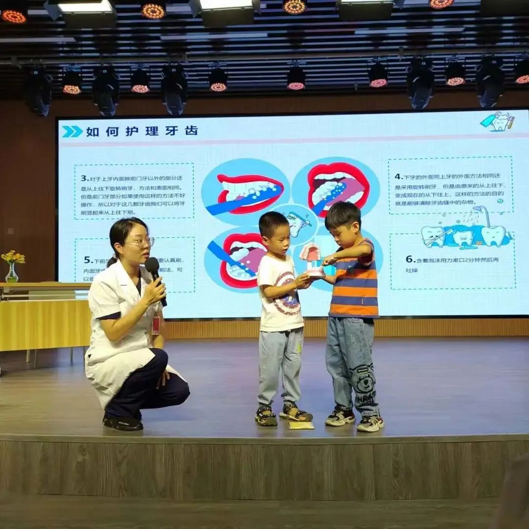 孩子們在臺下認(rèn)真聽講,舉手發(fā)言,在輕松愉悅的氛圍中懂得怎樣愛牙護(hù)牙。