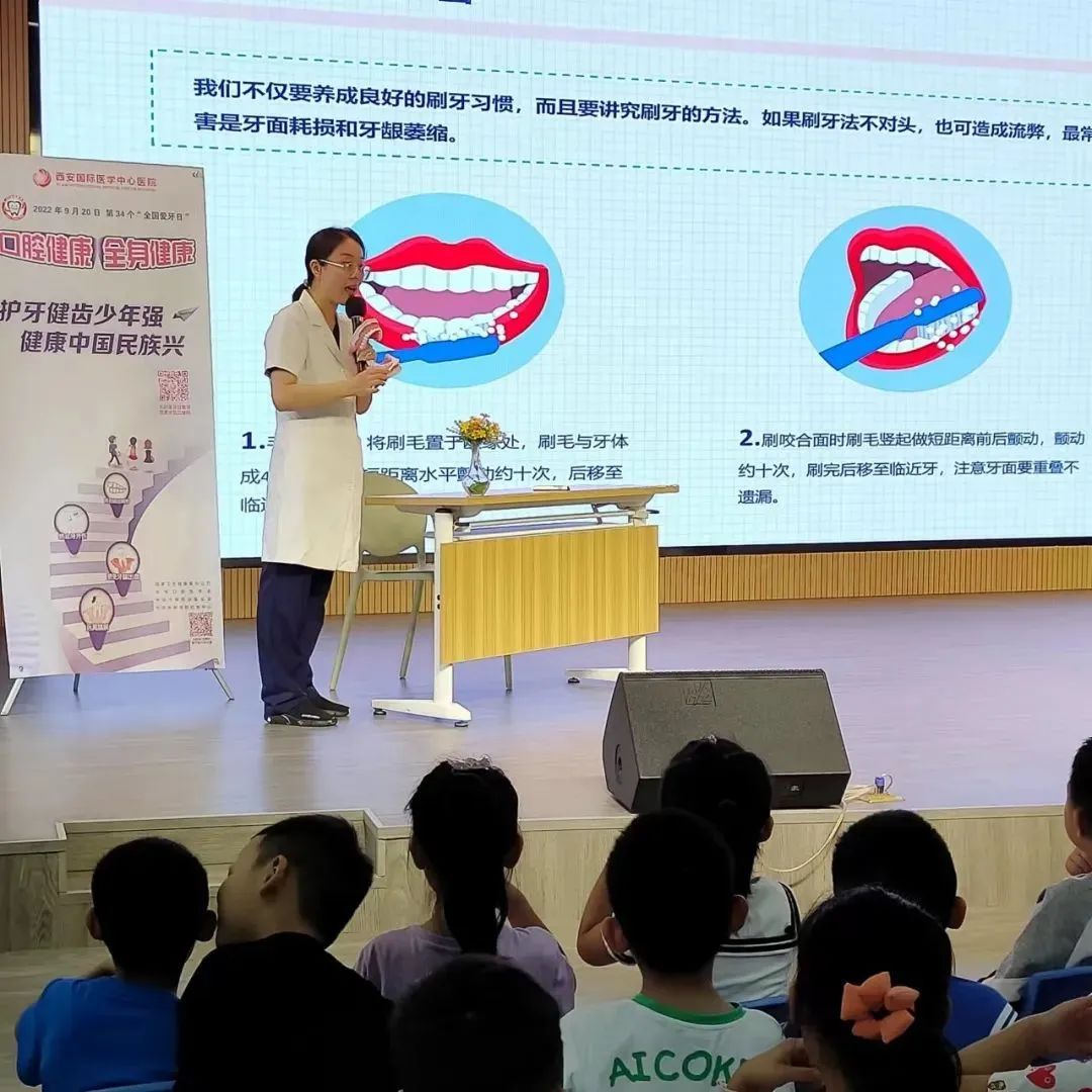 9月20日第34個(gè)“全國愛牙日”,為進(jìn)一步提高兒童的口腔健康意識,養(yǎng)成從小保護(hù)牙齒、清潔口腔的良好生活習(xí)慣,9月15日、17日,西安國際醫(yī)學(xué)中心醫(yī)院口腔科舉行愛牙日系列公益宣教活動(dòng),讓孩子們深切意識到愛牙護(hù)齒的重要性,為預(yù)防和減少兒童口腔疾病的發(fā)生打下堅(jiān)實(shí)基礎(chǔ)。