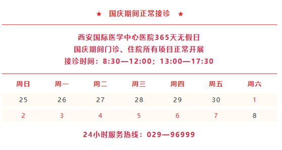 七天小長假將至,節(jié)假日看病難一直是老百姓最為頭疼的問題之一。為了更好地為患者提供優(yōu)質(zhì)的醫(yī)療服務(wù),西安國際醫(yī)學(xué)中心醫(yī)院國慶期間門診不停診、手術(shù)不停臺、住院不影響,為患者健康保駕護(hù)航。