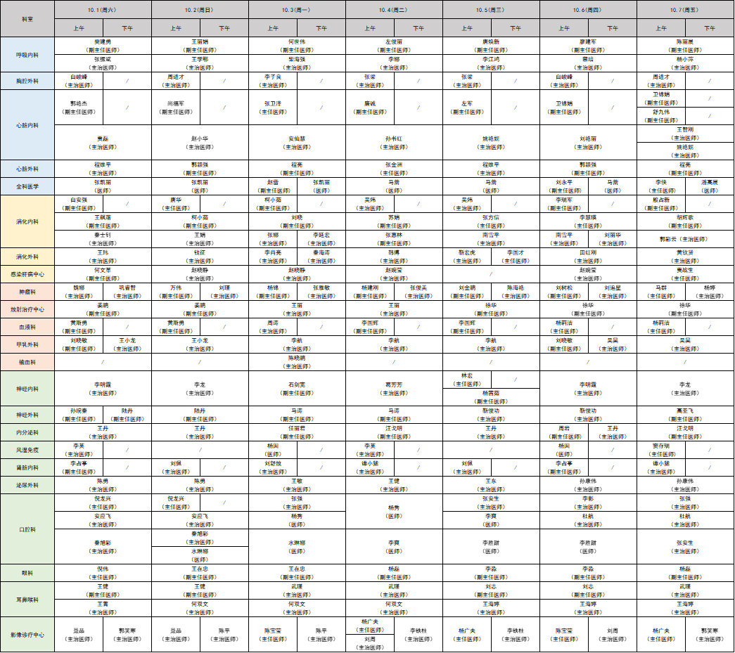西安國際醫(yī)學(xué)中心醫(yī)院北院區(qū)門診出診表